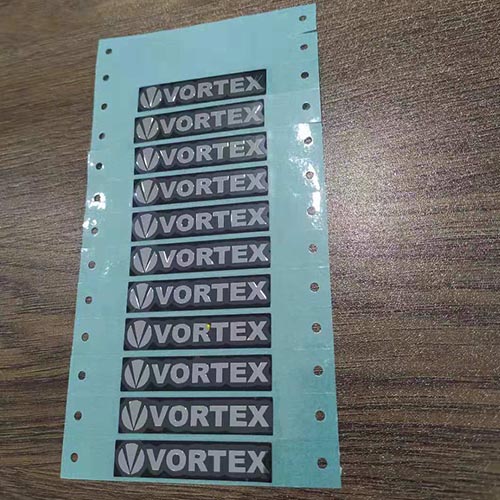 金屬標貼的組成有三層,分表層保護膜,里層成品,還有后面的背膠。使用簡單,只需輕輕的用手把標貼從不干膠紙上撕下來,然后粘貼到產品上面就可以了。