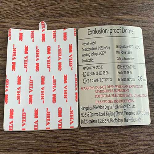 這個是不銹鋼銘牌,主要粘貼在機械設備上面,背膠使用超強粘力的3MVHB膠,不用擔心粘貼不牢固的問題,再加上不銹鋼蝕刻工藝,耐腐蝕好,不易褪色。
