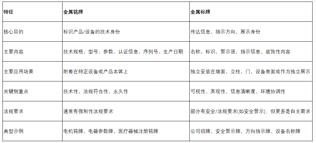 金屬銘牌和金屬標(biāo)牌的區(qū)別